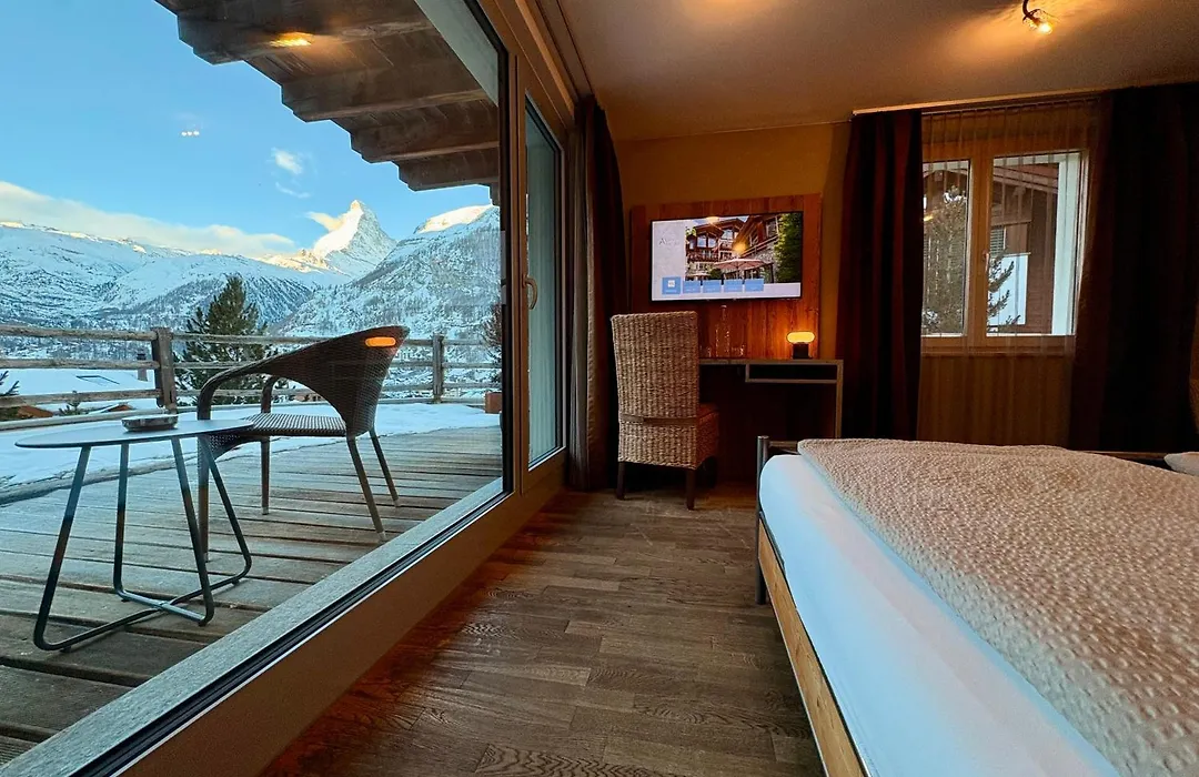 O hotel moderno dispõe de 12 quartos com local de descanso, assim como vistas para a montanha. Mobilados com escrivaninha, eles também têm janelas a prova de som. Alguns quartos têm vista para Matterhorn.
